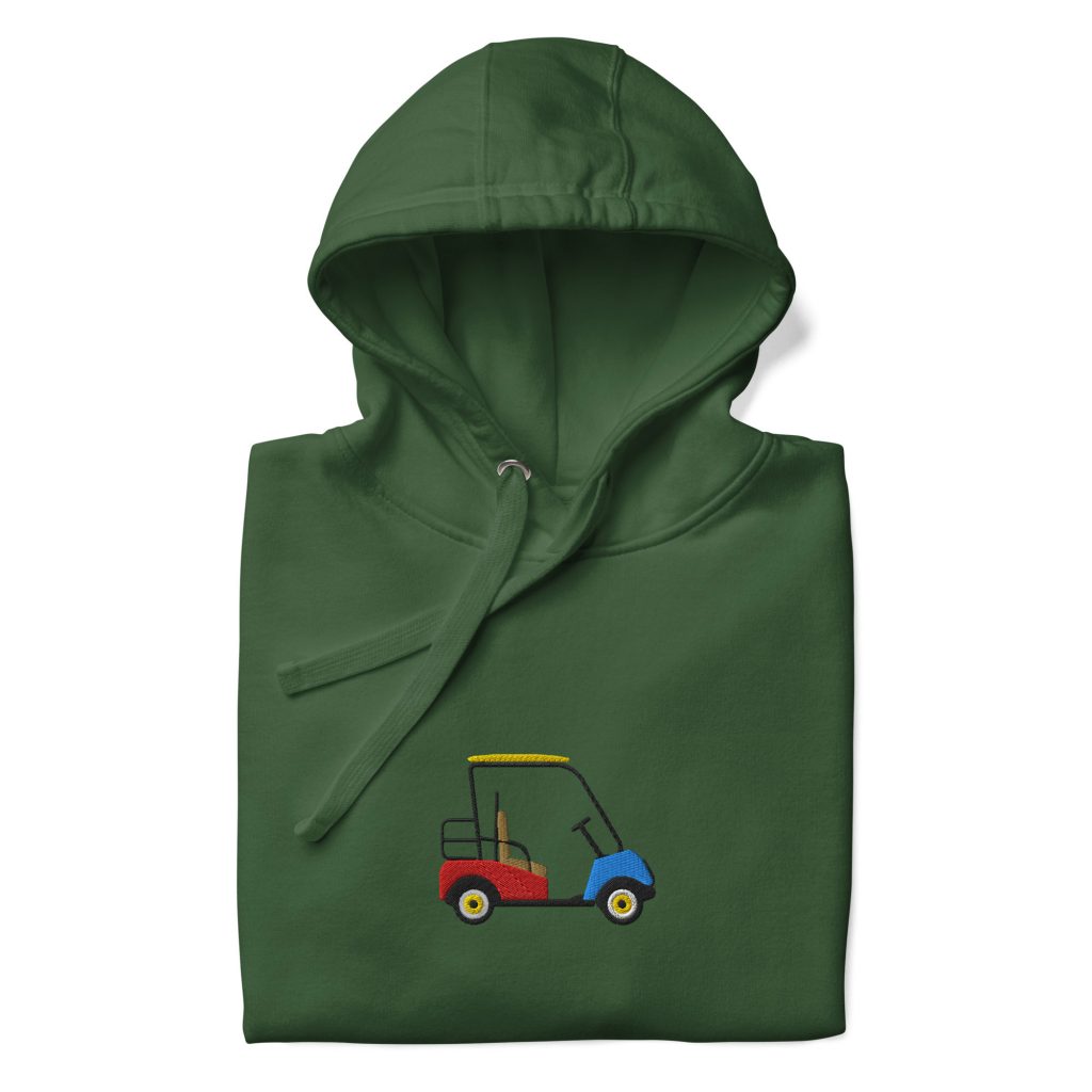 Hochwertig bestickter Unisex-Pullover mit farbenfrohem Golfcart-Motiv für alle, die entspannten Fahrspaß mit Stil zeigen wollen.