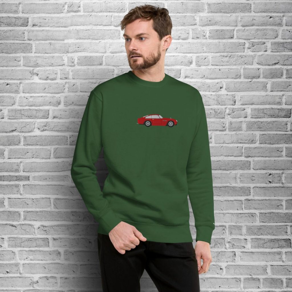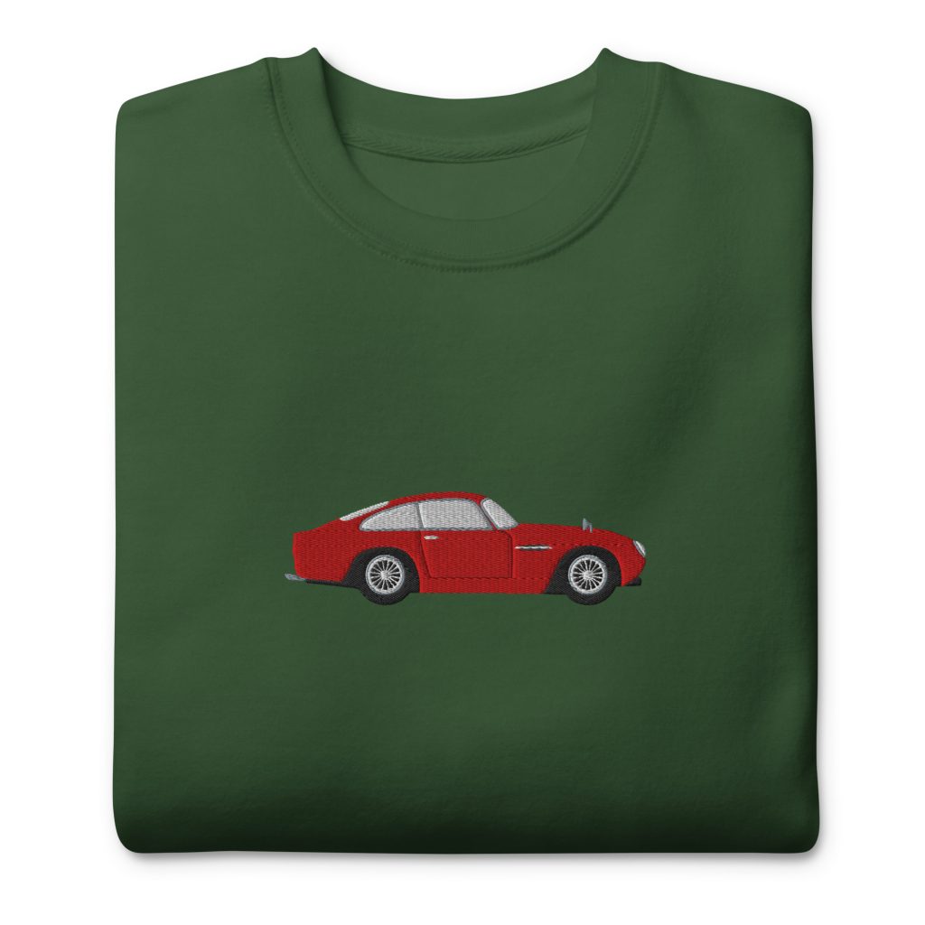Hochwertig bestickter Unisex-Sweater mit ikonischem 60s-Rennwagen für alle, die Retro-Design mit Komfort kombinieren wollen.